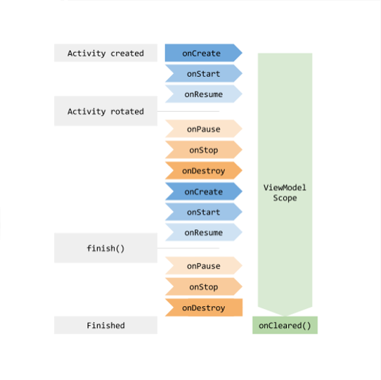 안드로이드의 ViewModel 생명주기는 기본적으로 Activity와 Fragment보다 긴 것을 알 수 있다. 위에서 설명했듯이 이러한 특징 때문에 데이터를 관리하고 유지하는데 더 유용하다는 것을 알 수 있다. ViewModel은 Activity와 Fragment들이 완전히 종료되면 onCleared() 실행이 되며 종료된다.