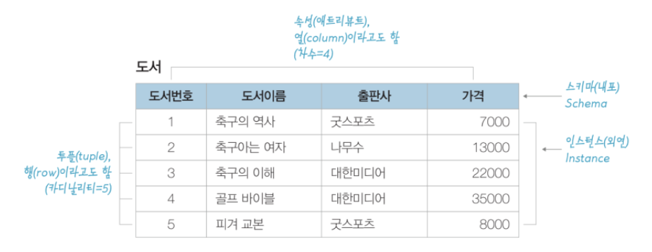 - 릴레이션은 스키마와 인스턴스로 이루어진다.