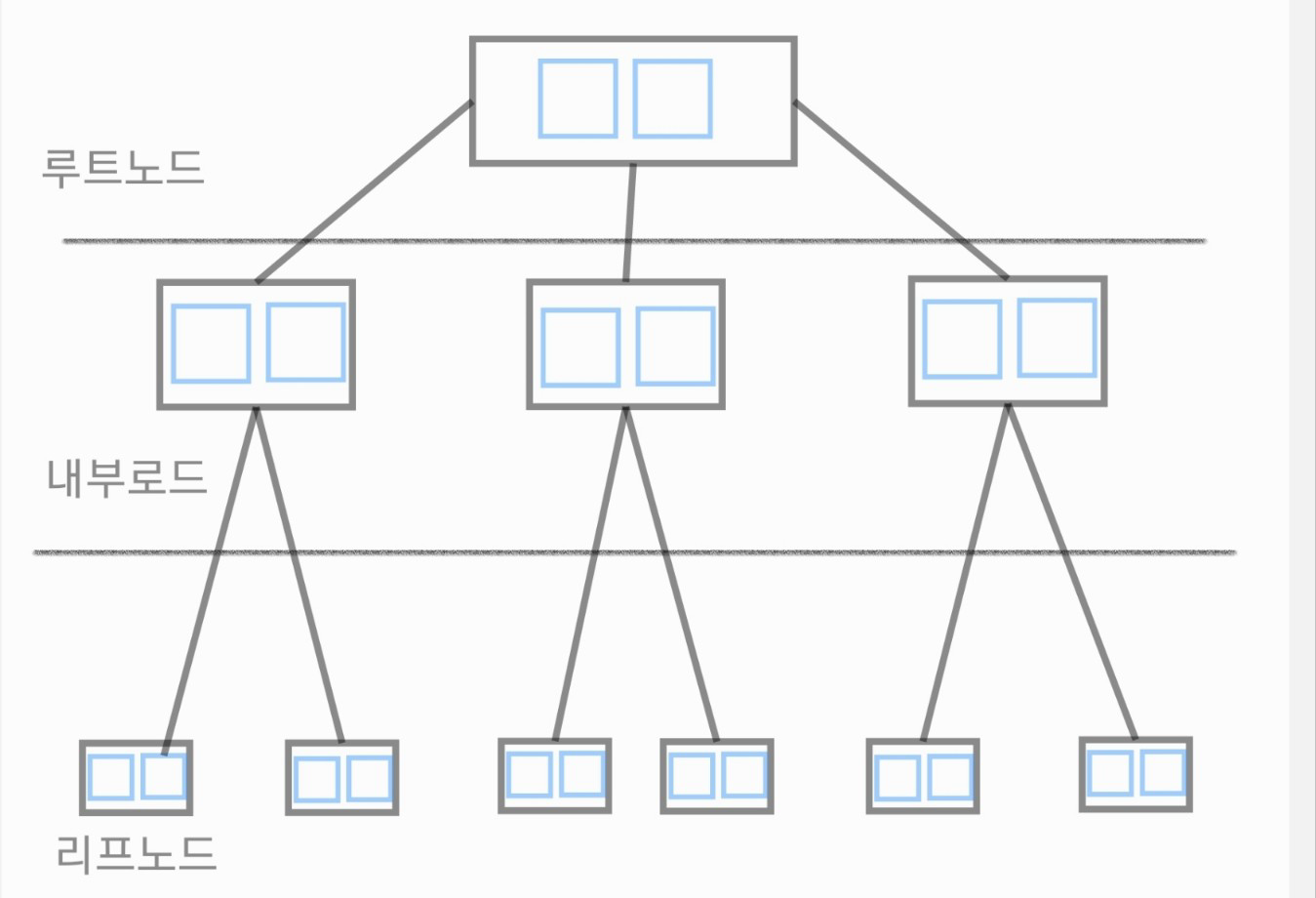 - 일반적으로 B-tree 형태의 구조를 가진다.
