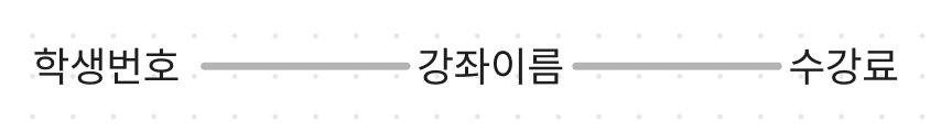 | 학생번호 | 학생이름 | 학과 | 주소 | 강좌이름 | 강의실 |