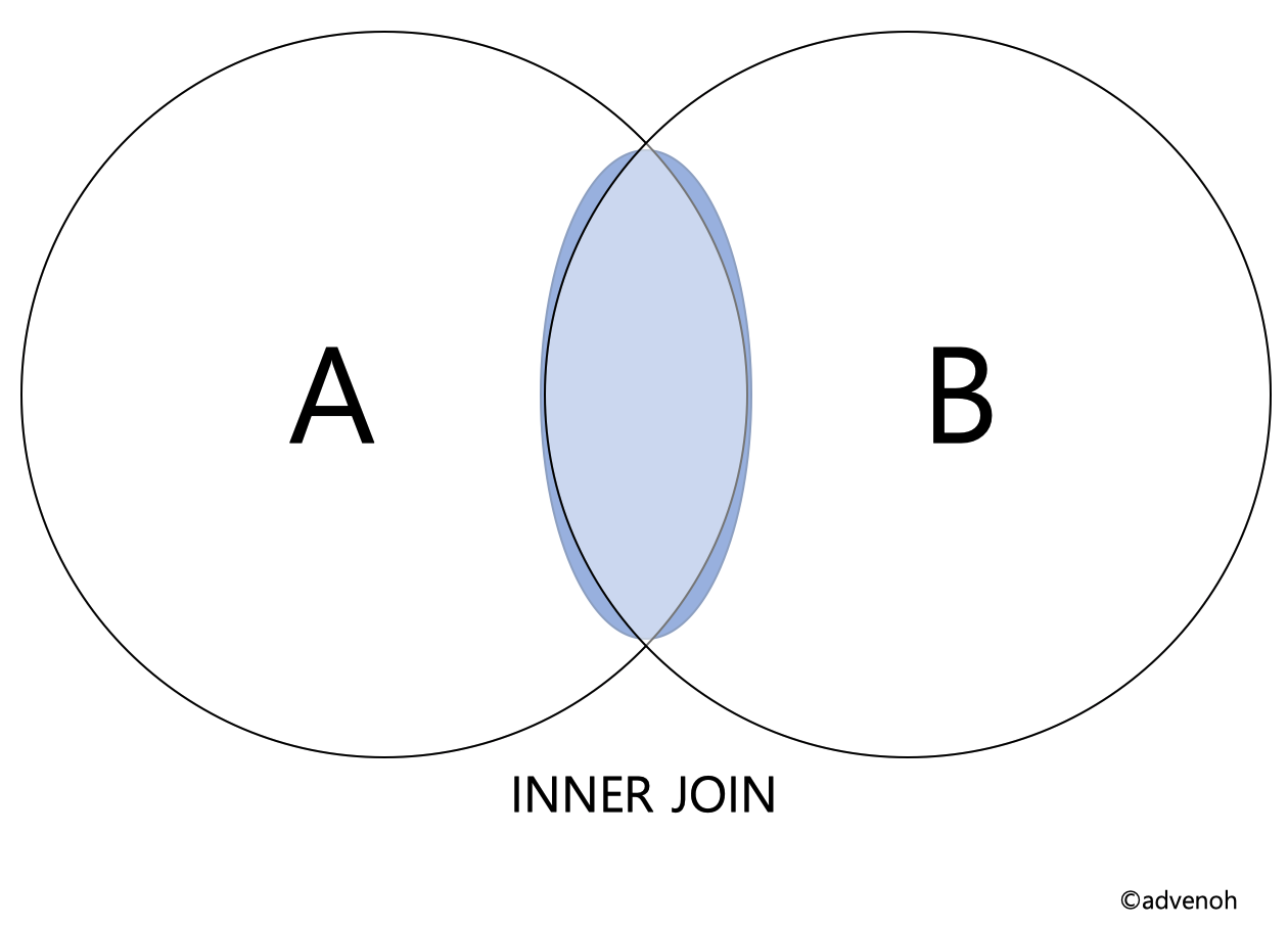 2개의 테이블 컬럼을 합쳐 두 테이블 간에 일치하는 행만을 반환해 새 테이블을 만든다. 말 그대로 두 테이블들의 교집합을 반환한다. 또한 공통된 값의 경우 행에 포함되지 않기 때문에, 결과의 크기가 작아진다.